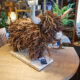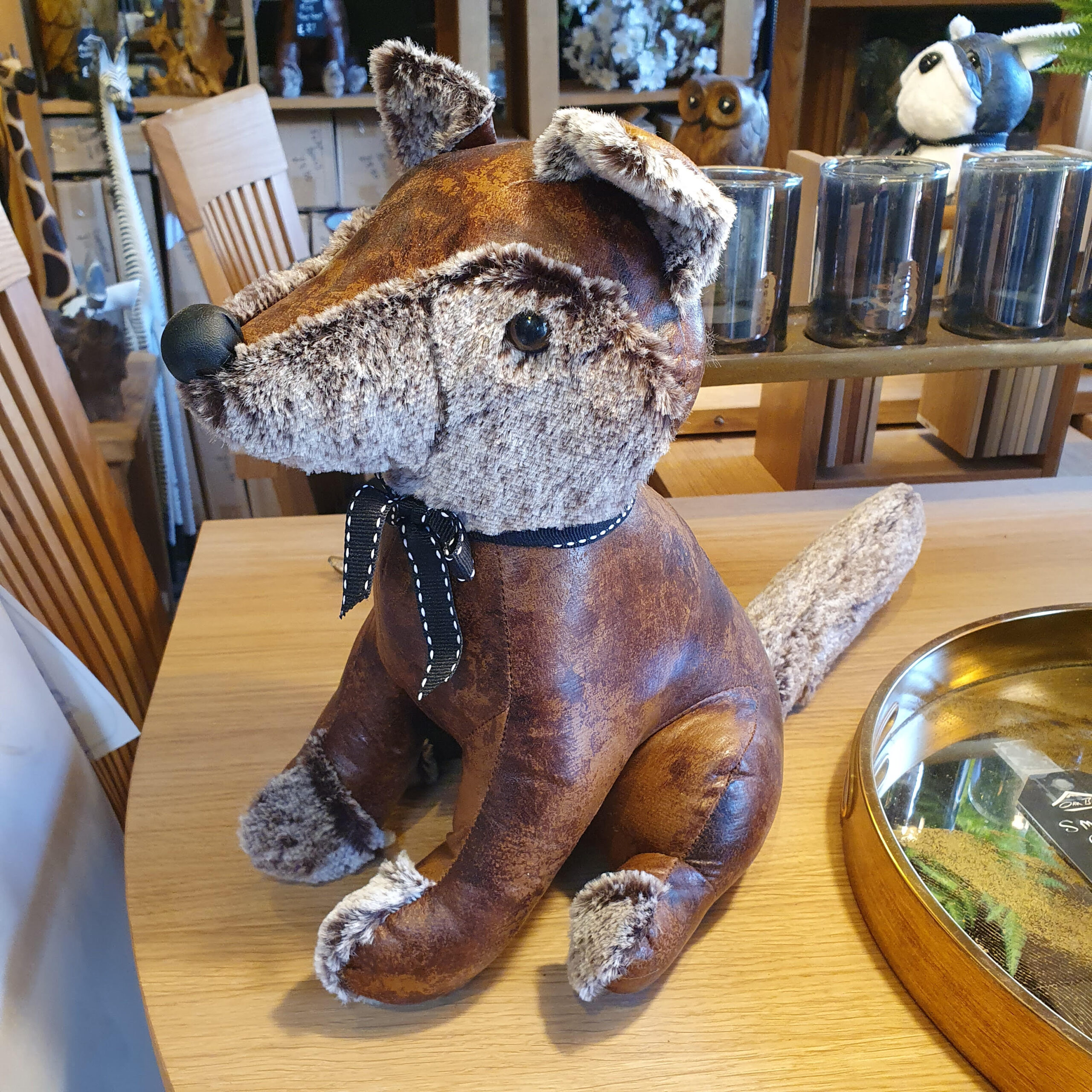 A faux leather fox design doorstop